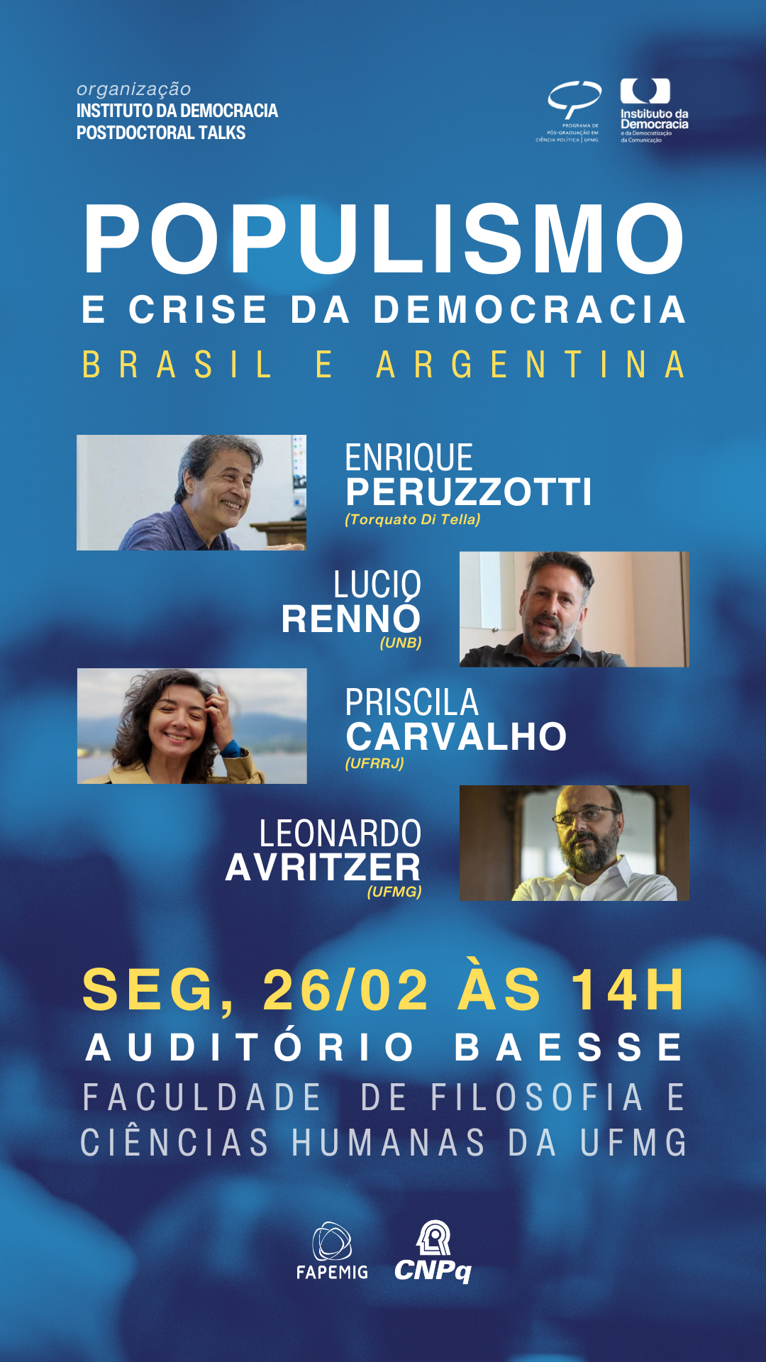 Será feita uma homenagem ao Prof. Leonardo Avritzer, agraciado com o Título de Professor Emérito da FAFICH.