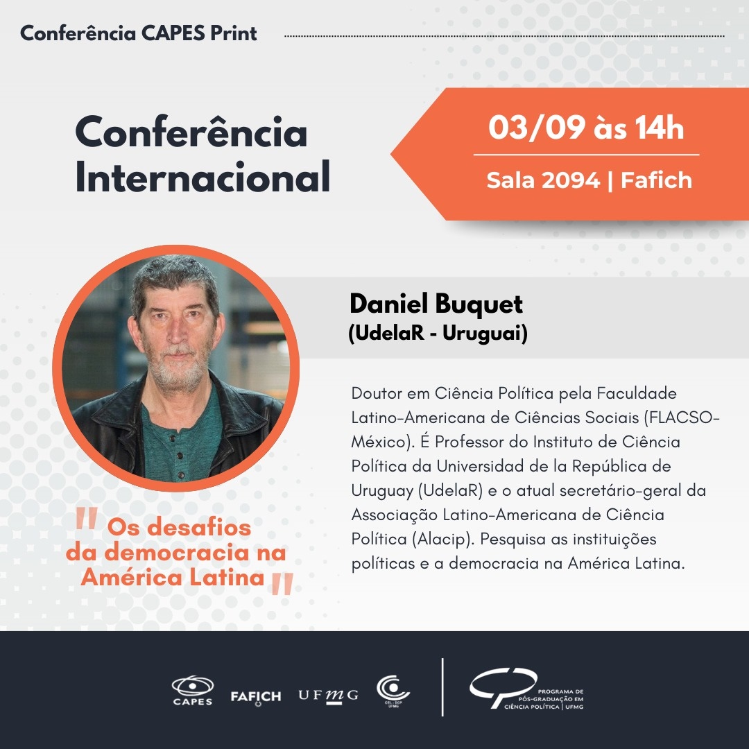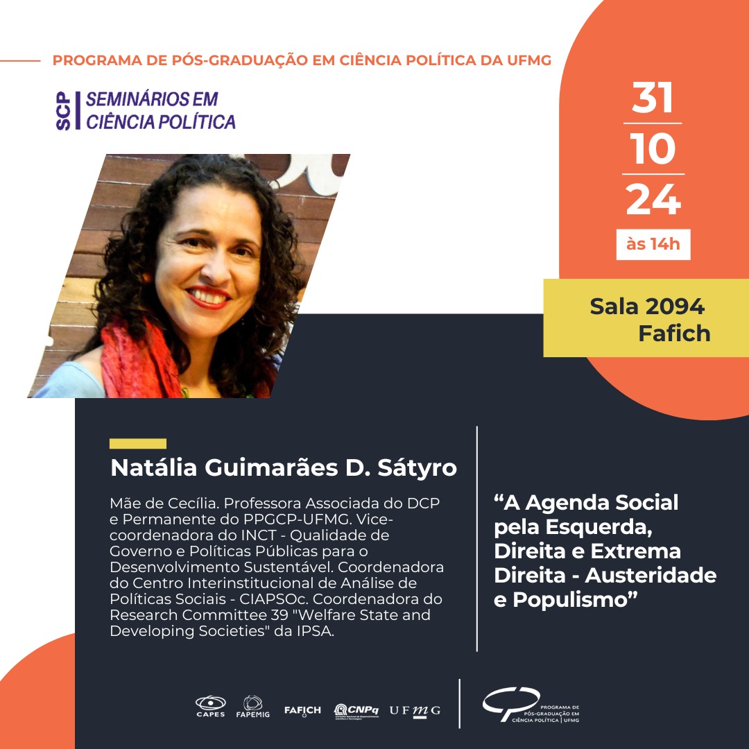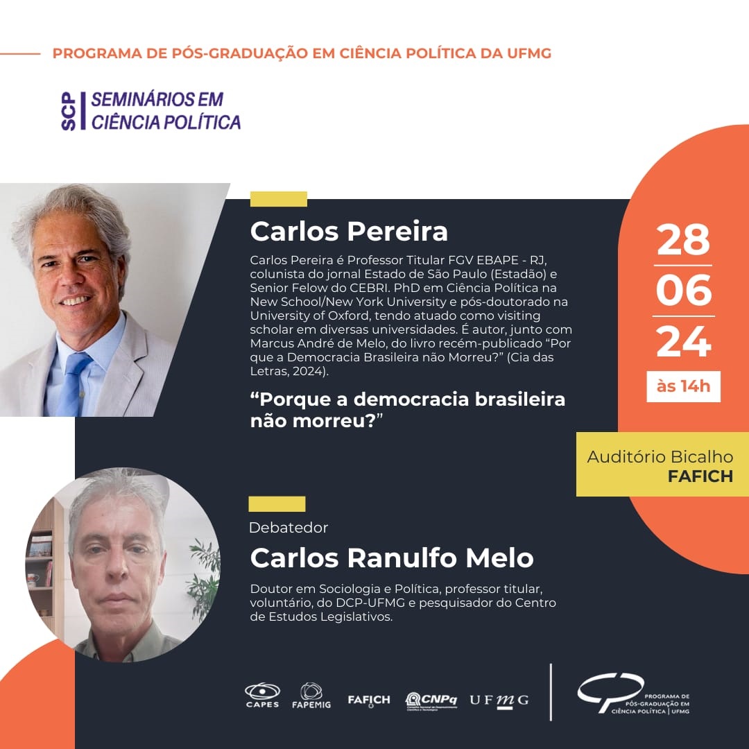 Local: Canal do Youtube (transmissão ao vivo) - Programa de Pós Graduação em Ciência Política UFMG