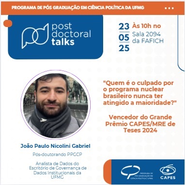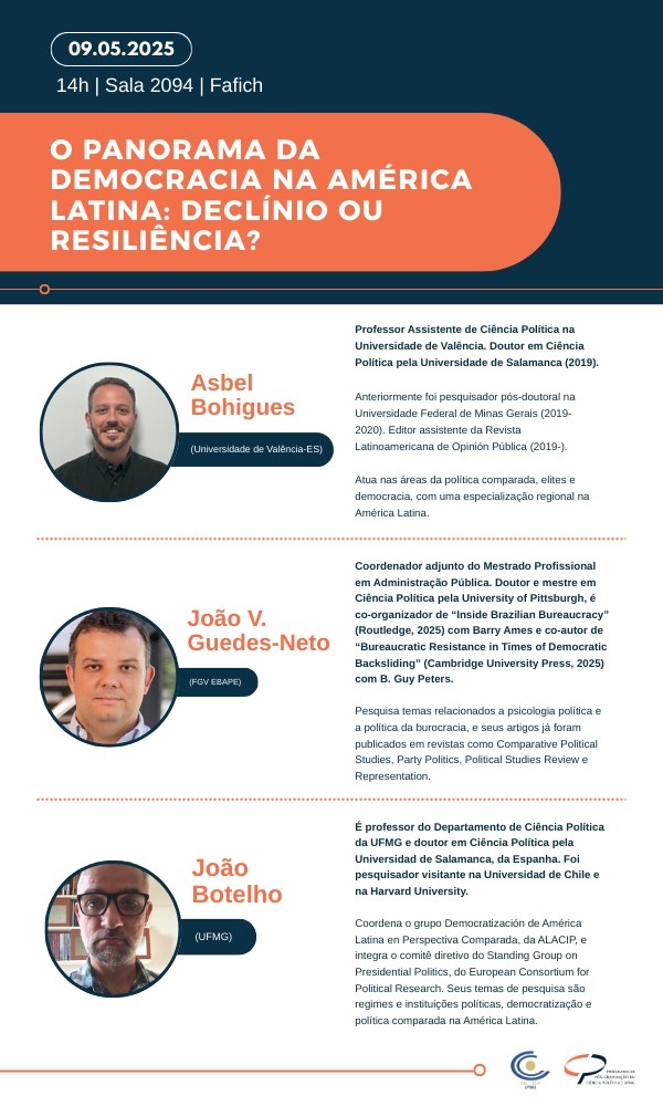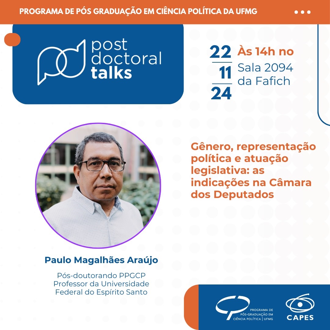 O grupo de residentes pós-doutorais do Programa de Pós Graduação em Ciência Política da UFMG convida para a conversa e debate: