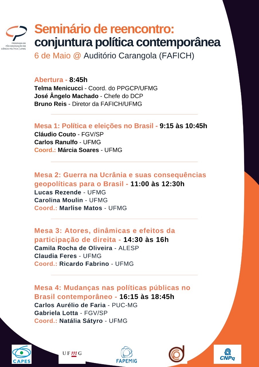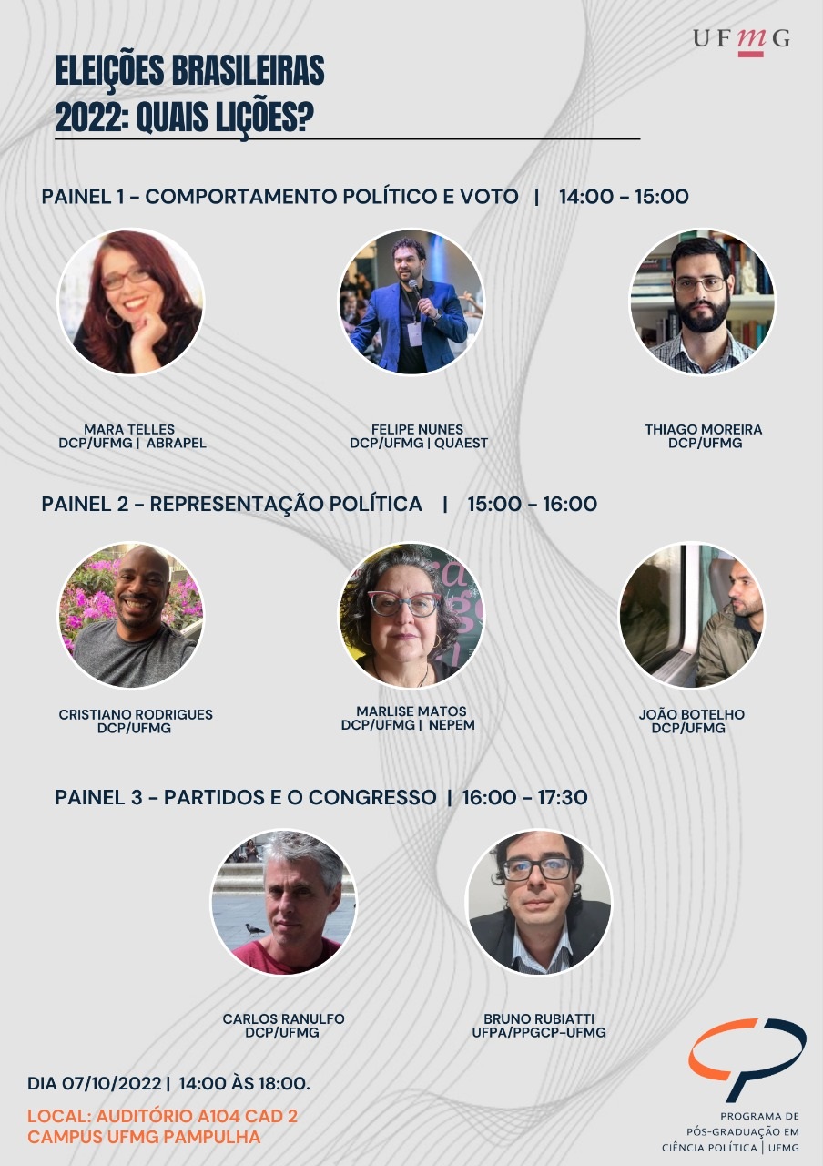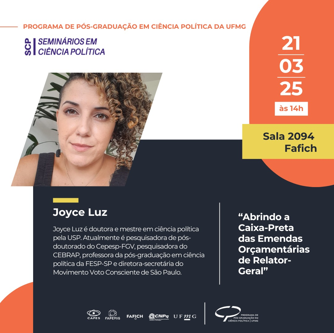 Local: Canal do Youtube (transmissão ao vivo) - Programa de Pós Graduação em Ciência Política UFMG