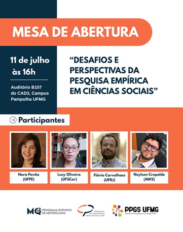 A Conferência de Abertura do Programa Intensivo em Metodologia Quantitativa e Qualitativa (MQ) discutirá os desafios e as novas perspectivas da pesquisa empírica em Ciências Sociais. Participarão Nara Pavão (UFPE), com foco em inferência causal em experimentos; Lucy Oliveira (UFSCar), abordando análise de texto e conteúdo; Flavio Carvalhaes (UFRJ), discutindo métodos quantitativos aplicados às desigualdades sociais; e Neylson Crepalde (AWS), explorando o uso de inteligência artificial e aprendizado de máquinas em pesquisas sociais e no mercado.