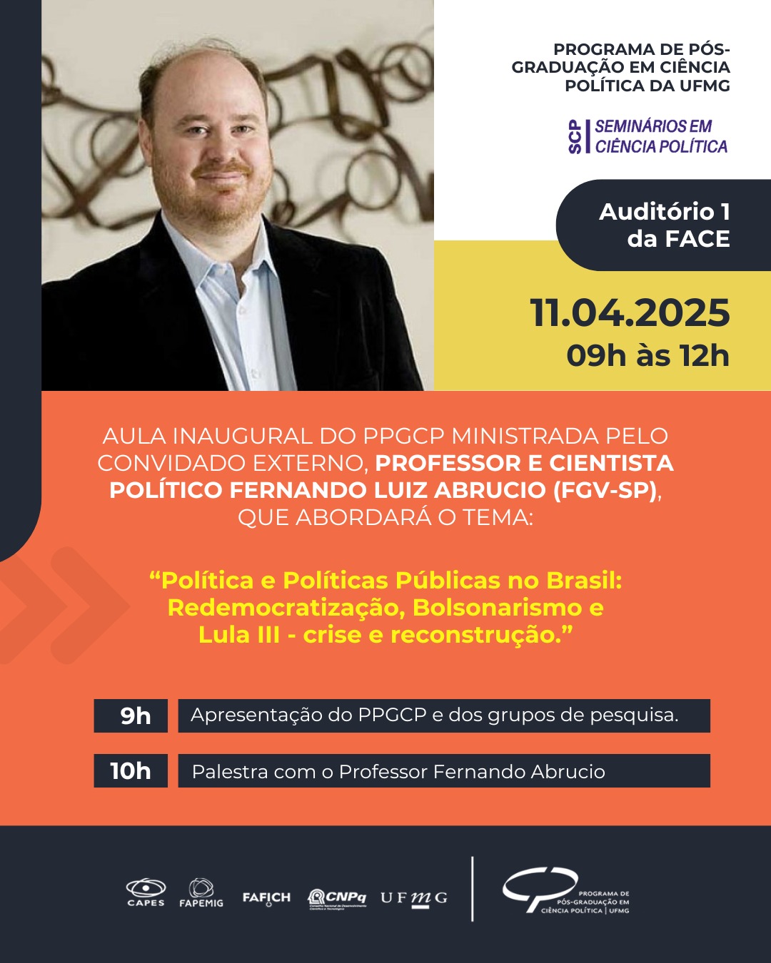Local: Canal do Youtube (transmissão ao vivo) - Programa de Pós Graduação em Ciência Política UFMG