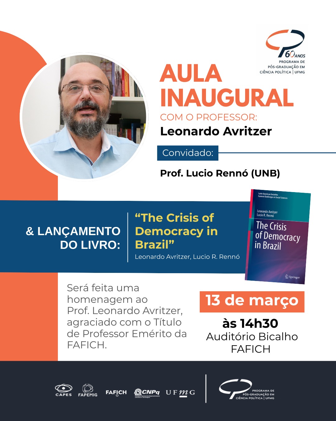 Será feita uma homenagem ao Prof. Leonardo Avritzer, agraciado com o Título de Professor Emérito da FAFICH.